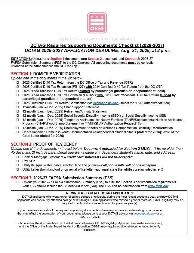 Correspondence: Communication by exchanging letters, emails, or other messages. Deadline: A date or time before which the completion of the DCTAG application process must be done.